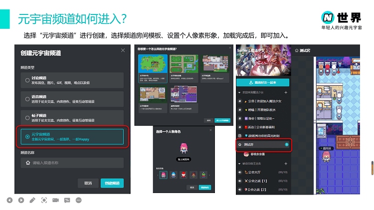 元宇宙频道是我们的特色聊天功能,你可以在这里创建自己的像素人物,并与其他用户进行实时语音互动。