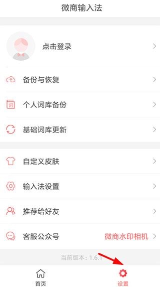 1、打开微脉输入法app,点击一进行设置。